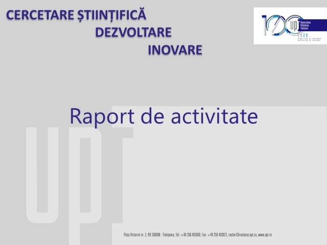 RAPORTUL DE ACTIVITATE AL DEPARTAMENTULUI CERCETARE-DEZVOLTARE